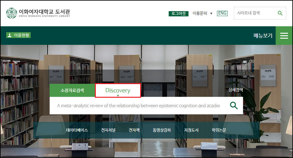 1. 도서관 홈페이지(https://lib.ewha.ac.kr/)에 로그인합니다.
